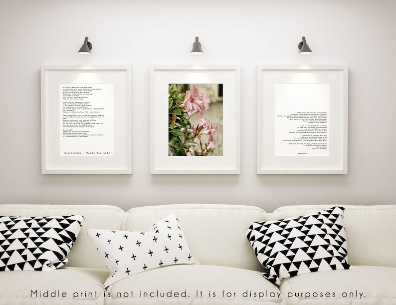 Desiderata poem print inspirational mental health wall art for therapist office wellness decor quote for calm mindful living retro style