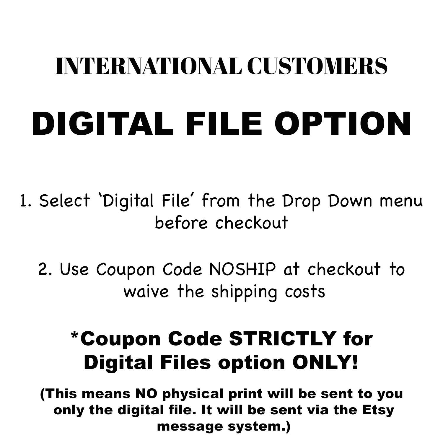 Choose the size of your print from the drop-down menu before checkout and whether you want your artwork sent as a Digital JPEG file (this will be sent to you within 24 hrs of payment) or as a high quality photo print.