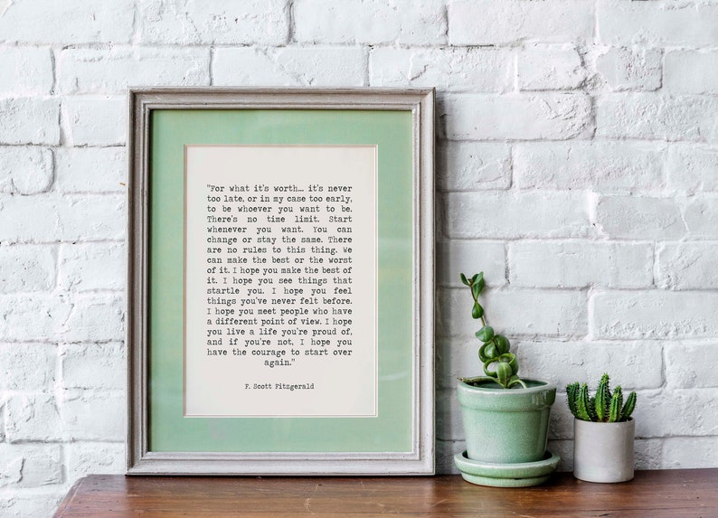 F Scott Fitzgerald For What It's Worth Quote Inspirational Print Gift, Typography Quote Print Unframed or Framed Art