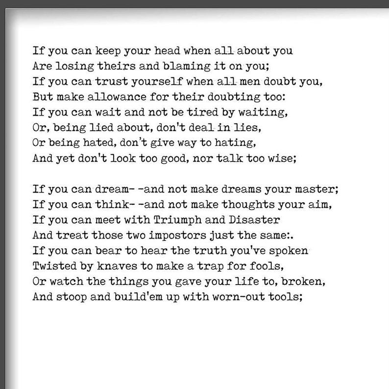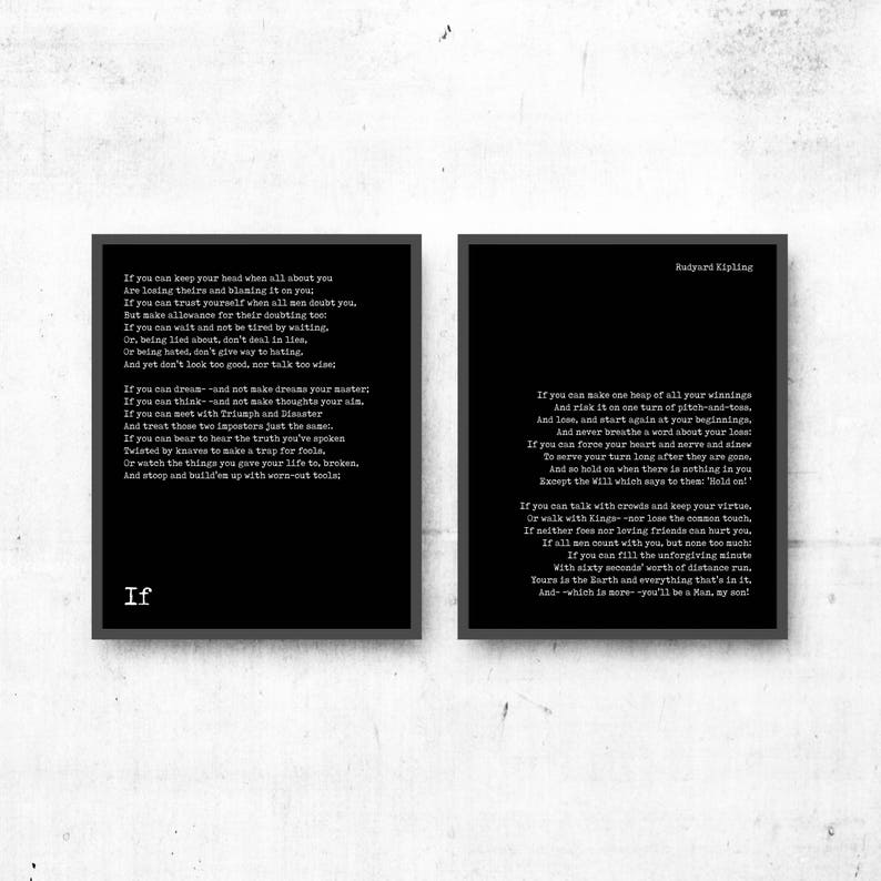 If by Kipling, If poem prints set of 2, Rudyard Kipling art, Motivational Poetry, Inspirational poem gift, FRAMED or UNFRAMED Art