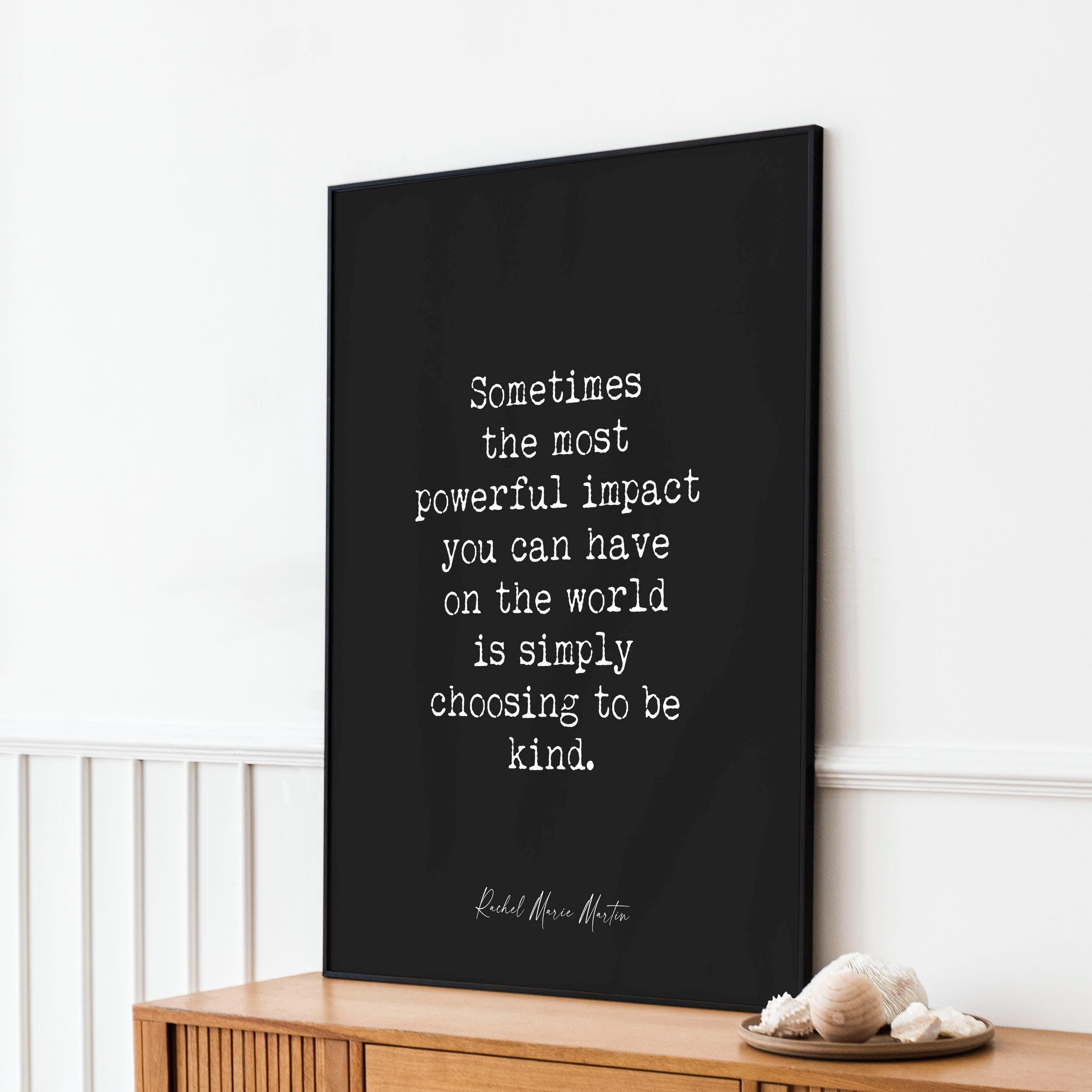 This thoughtful quote by Rachel Marie Martin is a gentle reminder that small choices make a big difference. Presented in a classic typewriter font and available in black or white background, this minimalist print blends effortlessly into any decor style while offering a meaningful message of compassion and presence.