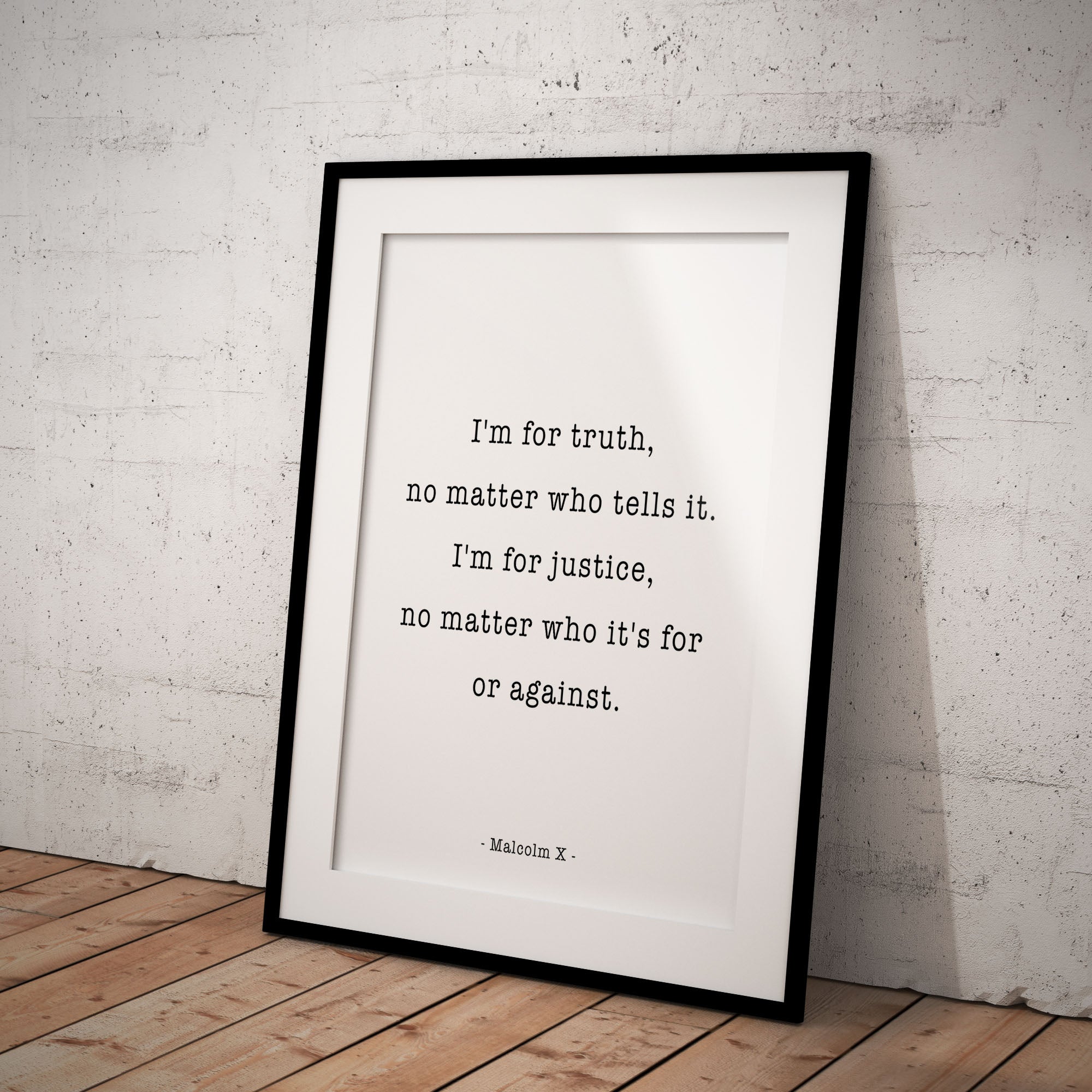 Malcolm X Truth and Justice Quote Print Civil Rights Typography Art