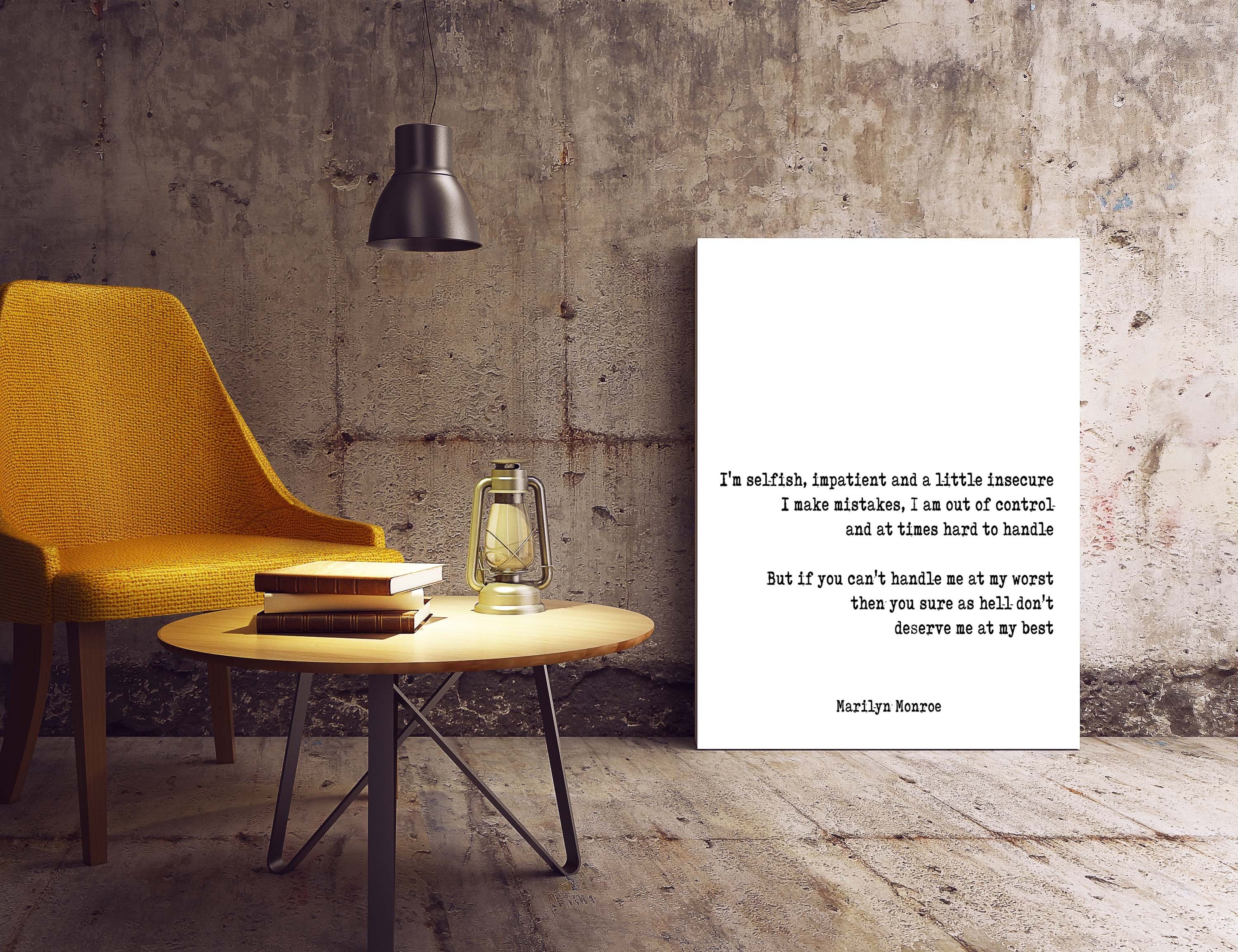 Marilyn Monroe Quote Print – “Handle Me at My Worst” Classic Literary Wall Art