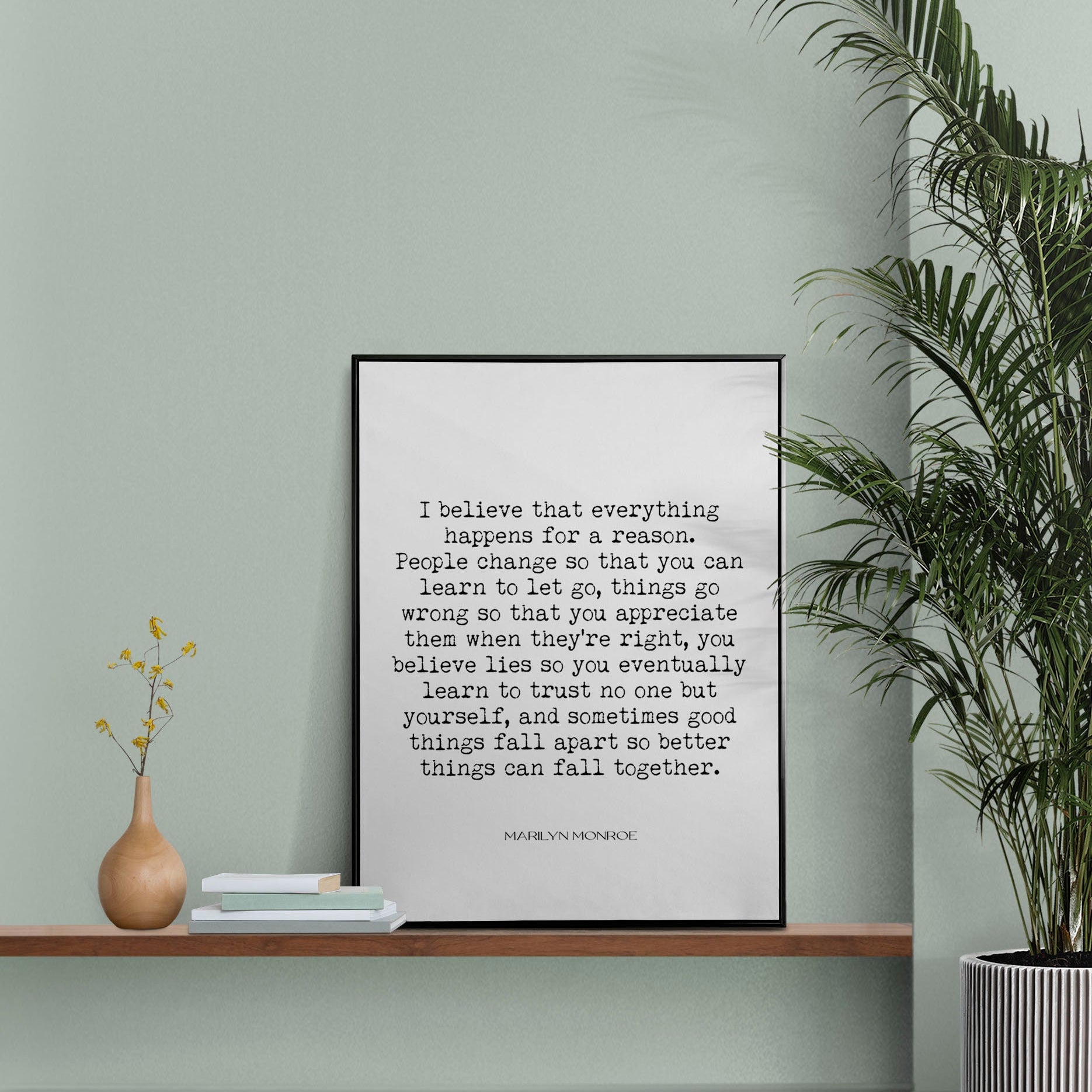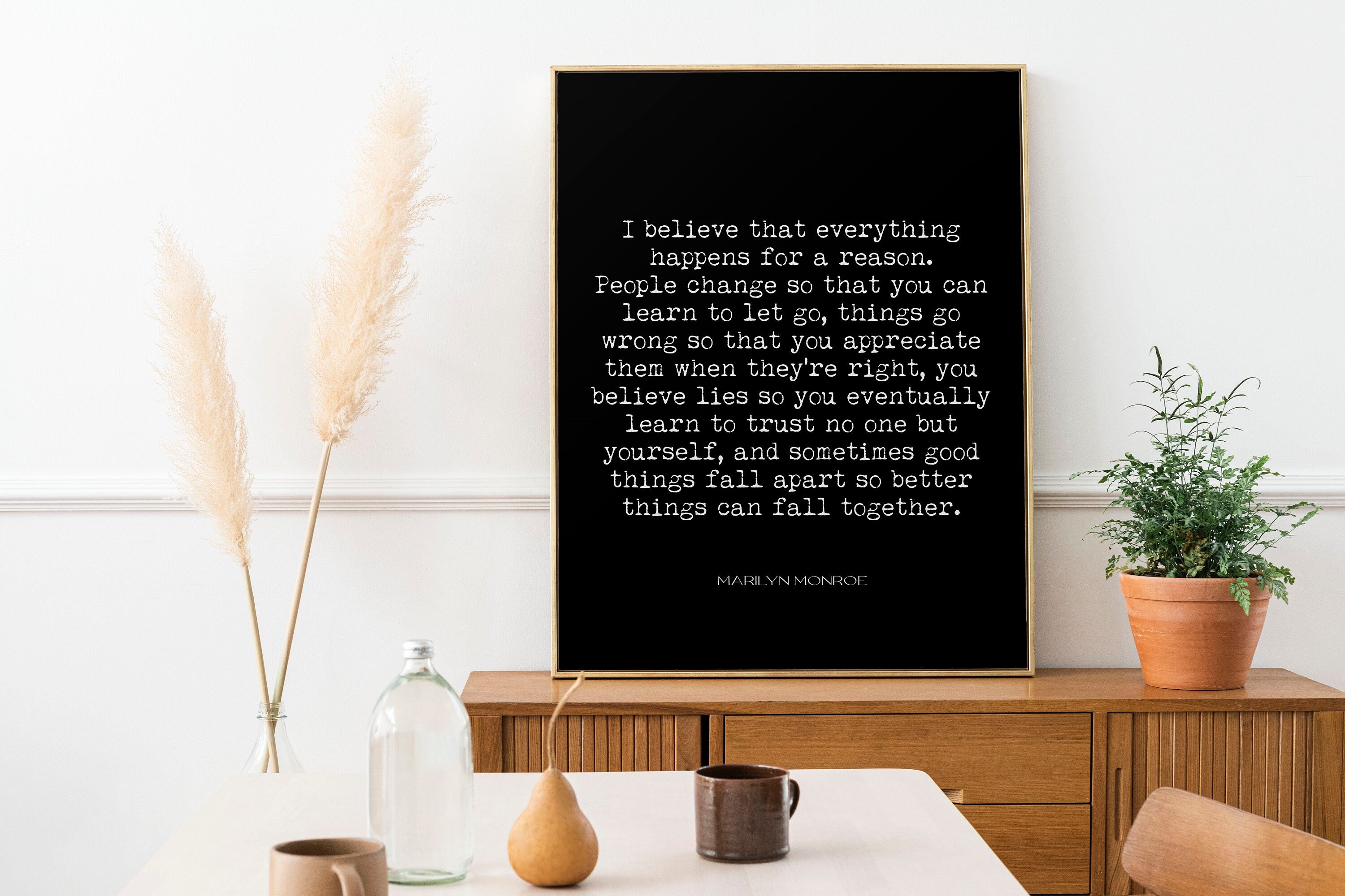 These powerful words, often attributed to Marilyn Monroe, remind us that change, loss, and struggle can also lead to strength and renewal. This literary print brings her timeless perspective into your home as a daily reminder of resilience and growth.