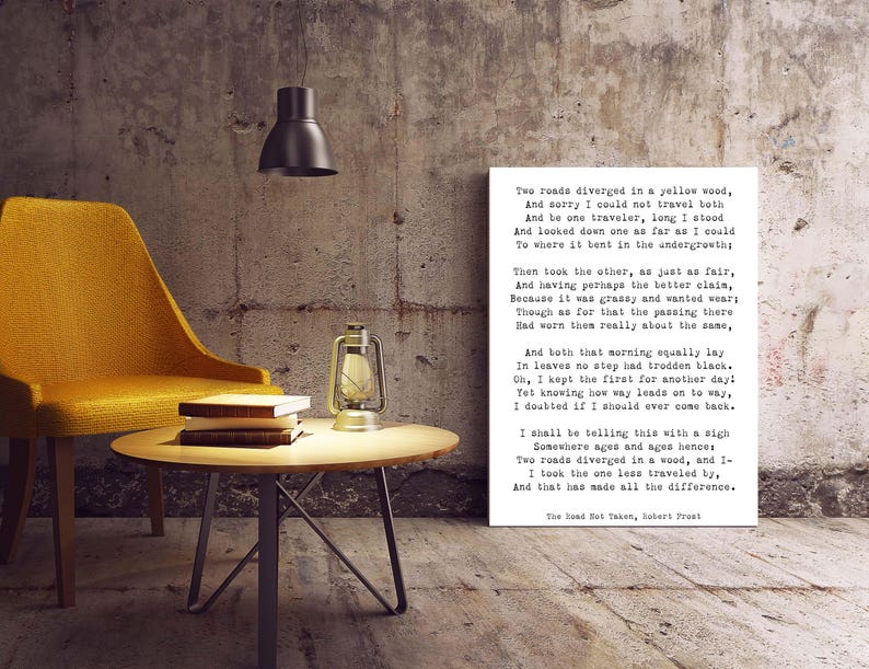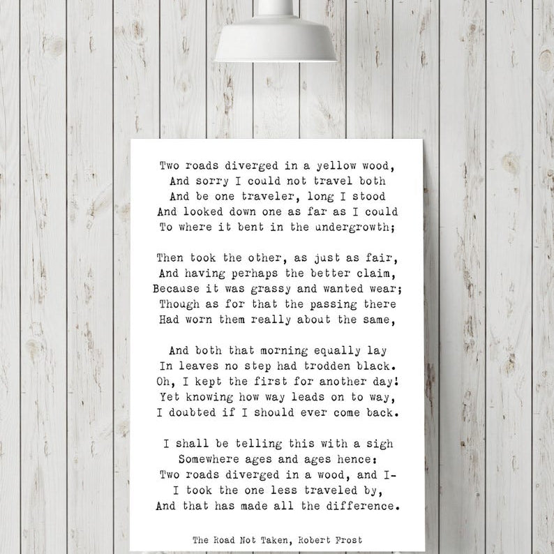 Robert Frost Poem Quote Print, The Road Not Taken Poem Poster, Two Roads Diverged Literary Gift Print, Yellow Wood Poetry Print